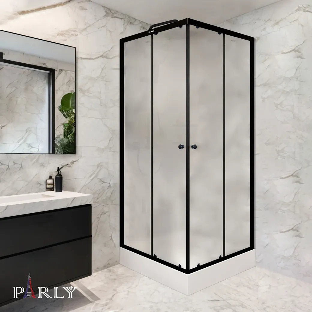 Душевой уголок Parly 90х90 см, с поддоном, профиль черный, стекло прозрачное арт-ZFQ911B