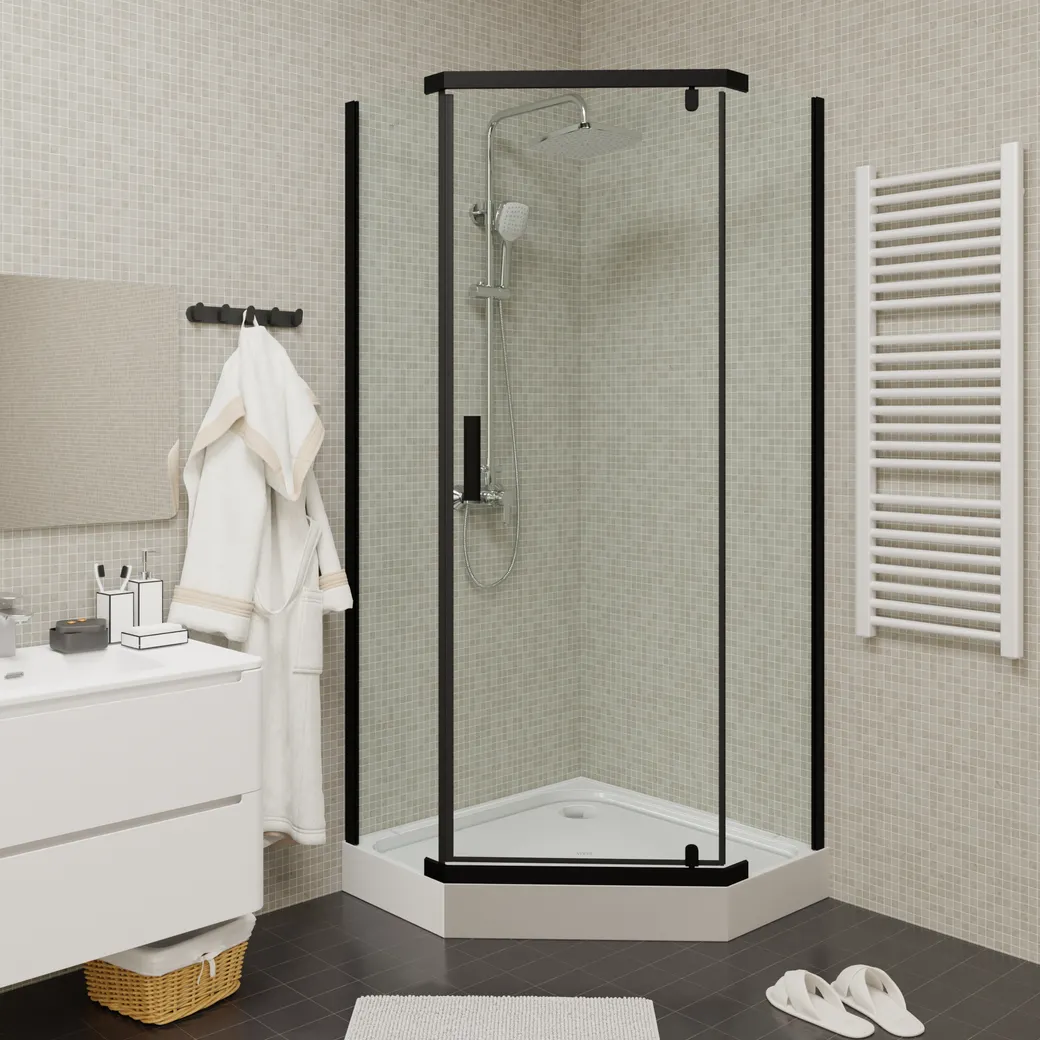 Душевой уголок с поддоном Parly 90х90х195 см, профиль черный, стекло прозрачное арт-ZPE911BE