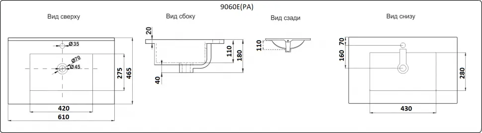 Умывальник CeramaLux арт-9060E