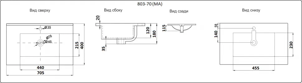 Умывальник CeramaLux YJ803-70