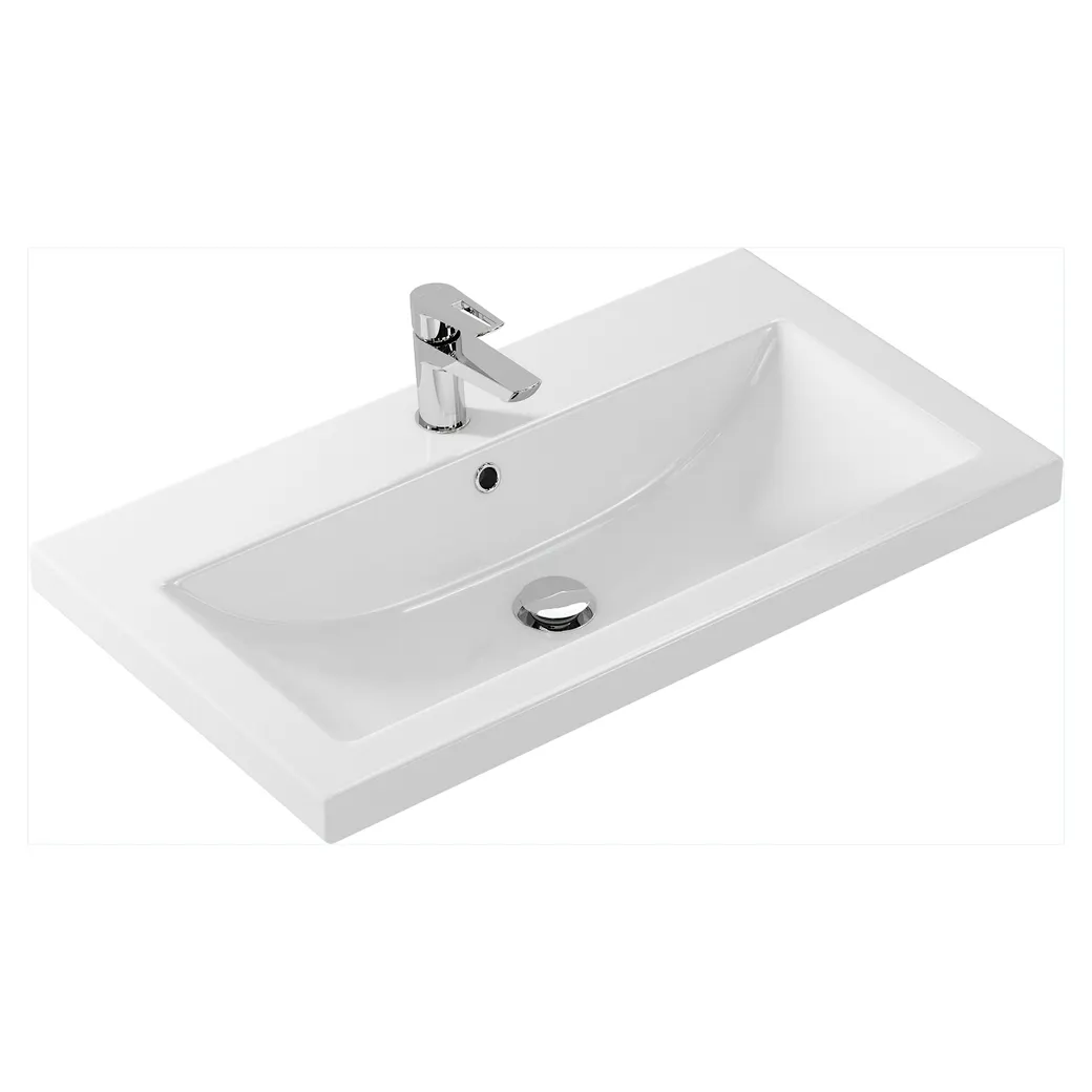 Фаянсовый умывальник Como 80 см с четкими геометрическим линиями идеально впишется в любой современный интерьер.