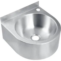 Настенный умывальник полукруглый из нержавеющей стали AISI 304 с отверстием для смесителя