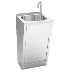 Умывальник с автоматическим сенсором, который включает кран выполнен из нержавеющей стали AISI 304, также в комплект входят сливной клапан, кран . Время работы : 15 секунд