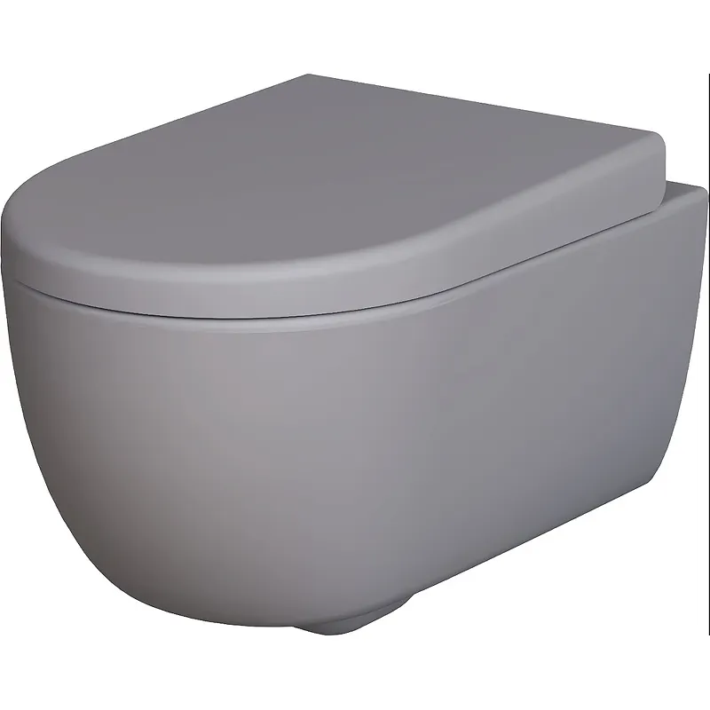 - Современный дизайн: Овальная форма и серый матовый цвет делают унитаз стильным элементом интерьера.