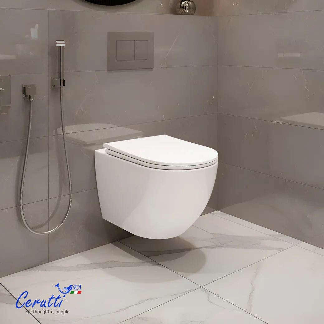 Унитаз AMICI Aria Tornado подвесной безободковый со смывом торнадо Ceruttispa CT11388 (490х335х340)