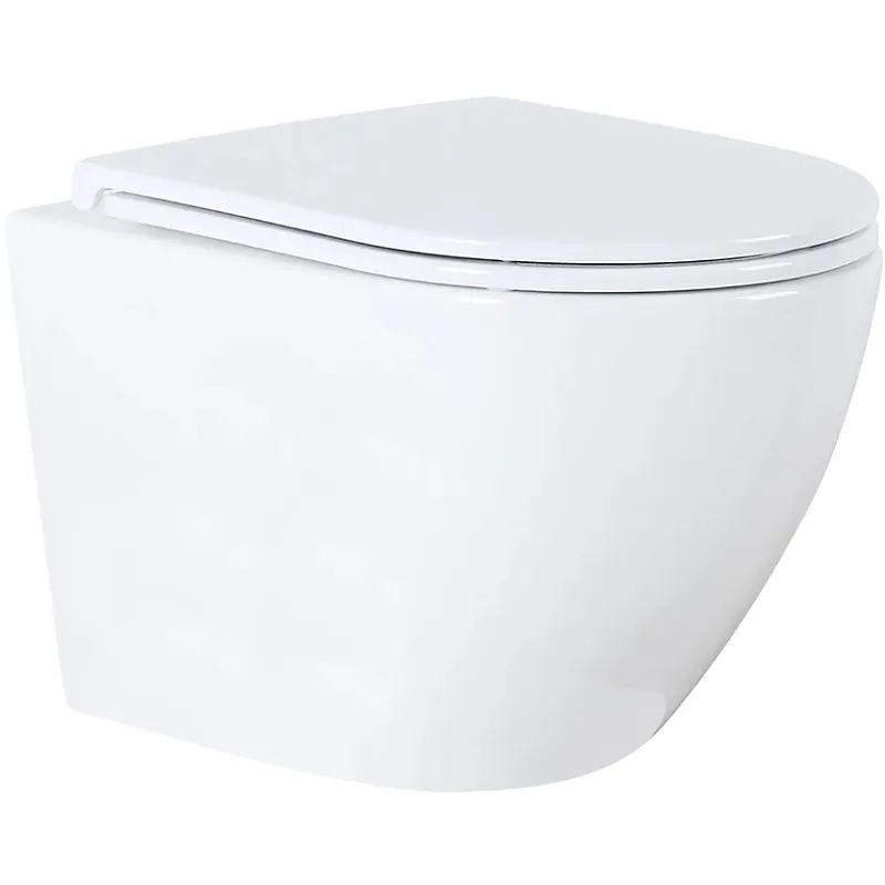 - Безободковый дизайн: облегчает уход за унитазом и поддержание гигиены благодаря отсутствию труднодоступных мест.