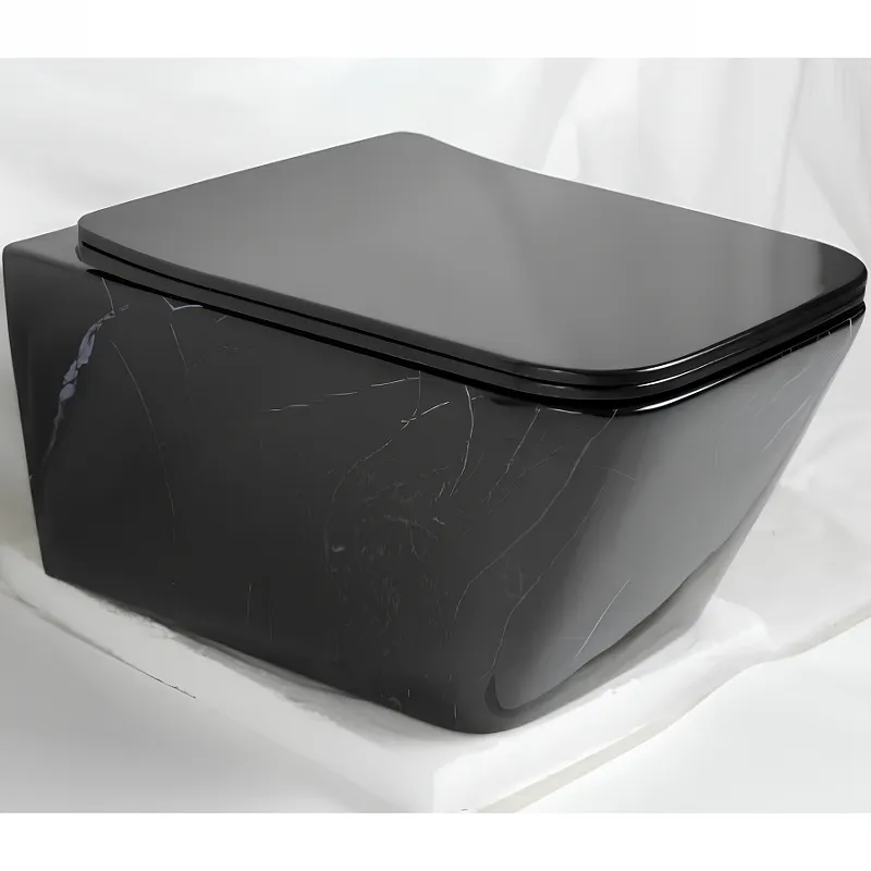 Унитаз CeramaLux 2215BW подвесной Черный мрамор с сиденьем Микролифт