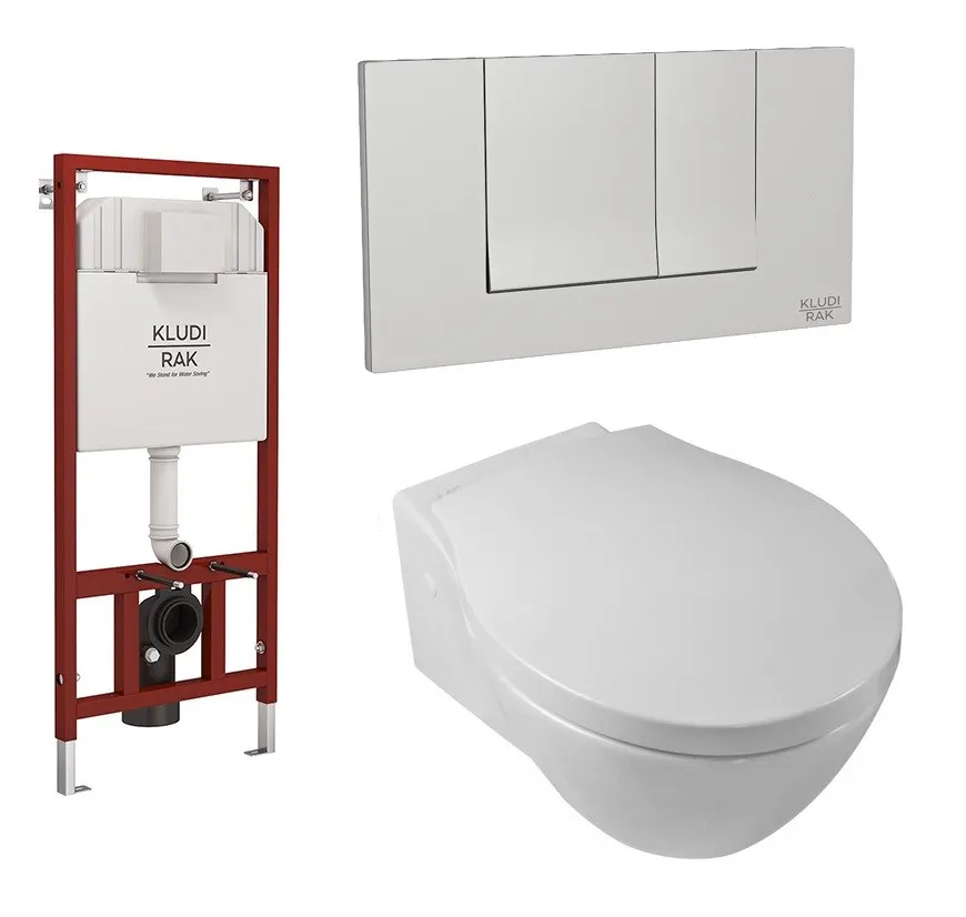 Унитаз HATRIA NIDO подвесной комплект с cиденьем с крышкой с плавным опусканием цвет белый с инсталляцией для унитаза и кнопка хром KLUDI RAK арт-HKF002