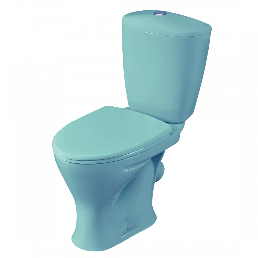Унитаз-компакт "Версия" наклонный выпуск, с кнопочной арматурой и сиденьем, голубой SANTERI арт-1P4015S0600BF