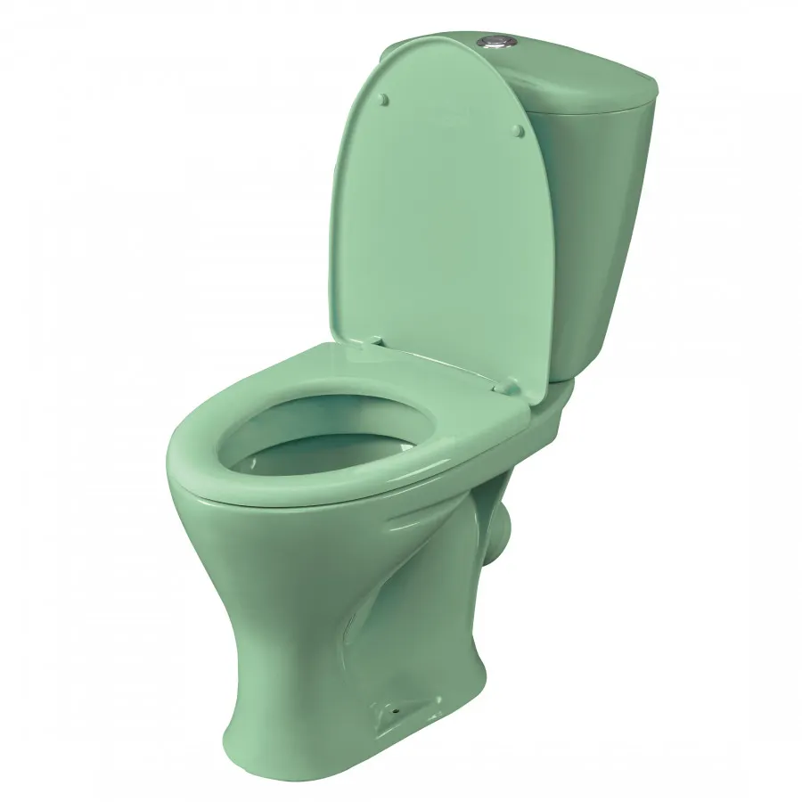 Унитаз-компакт "Версия" наклонный выпуск, с кнопочной арматурой и сиденьем, салатовый SANTERI арт-1P4015S0400BF