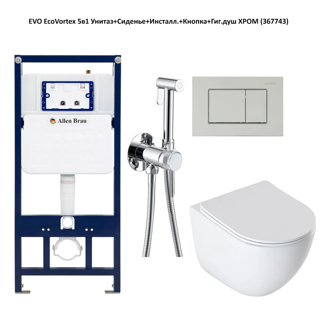 Унитаз с инсталляцией Aquanet EcoVortex, с гигиеническим душем арт-348039+347722+347724+296357