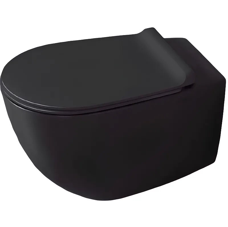 - Современный дизайн: Черный матовый цвет и безободковая конструкция делают этот унитаз стильным акцентом в ванной комнате.
