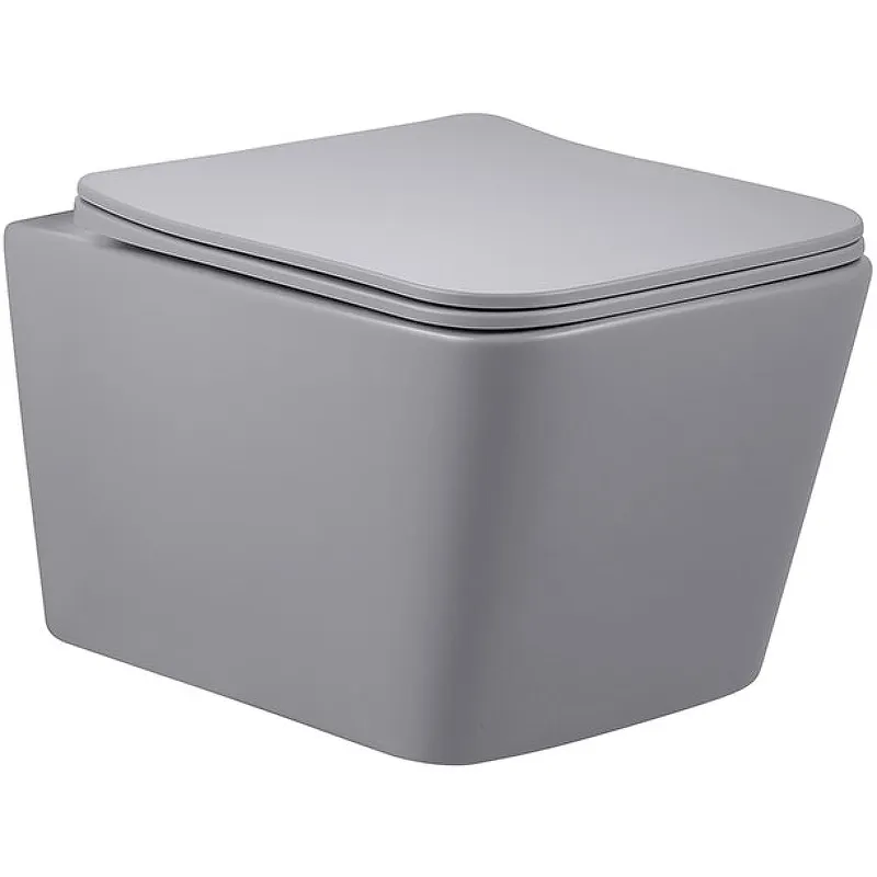 - Современный дизайн: Серый матовый цвет и квадратная форма делают унитаз элегантным элементом интерьера.