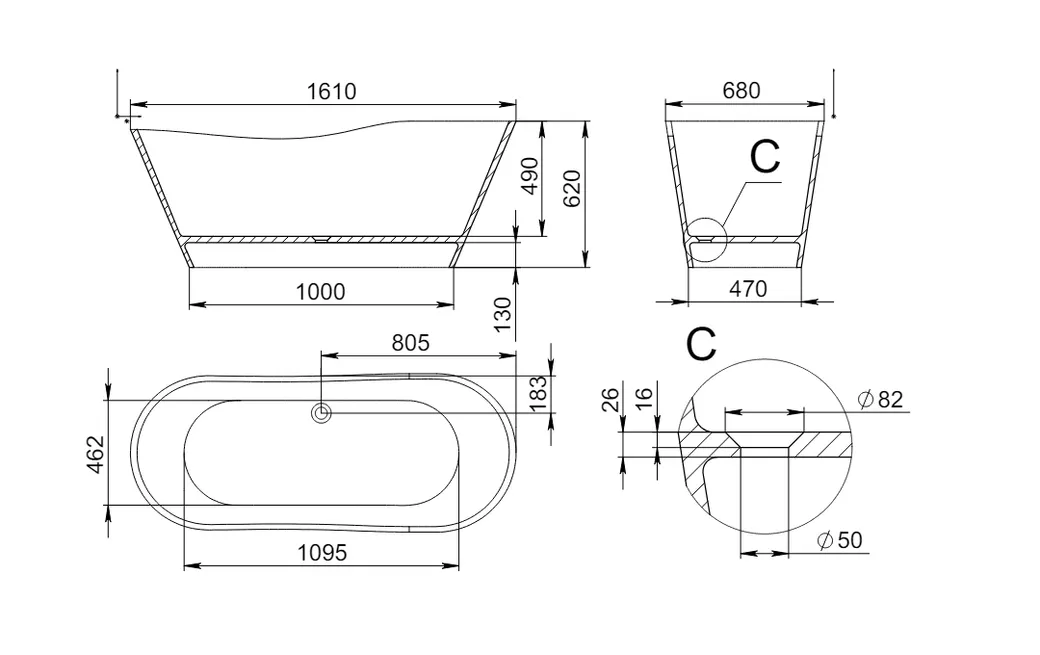 Ванна AFRODITA 161x68 Soft Rock 1.01.005.11.1
