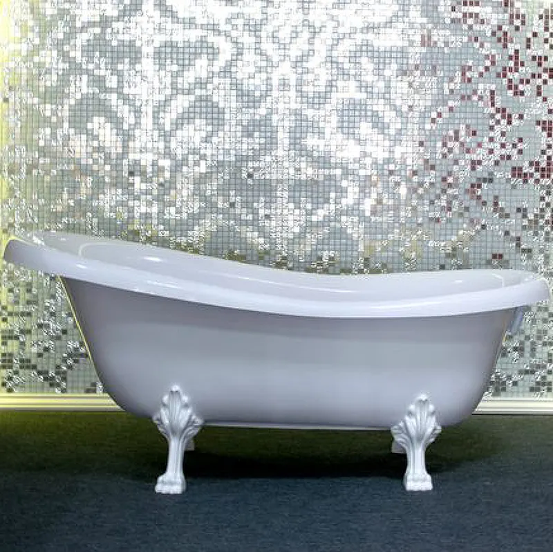 - Ванна на каменных ножках: Элегантные белые лапы добавляют изысканности и стиля.