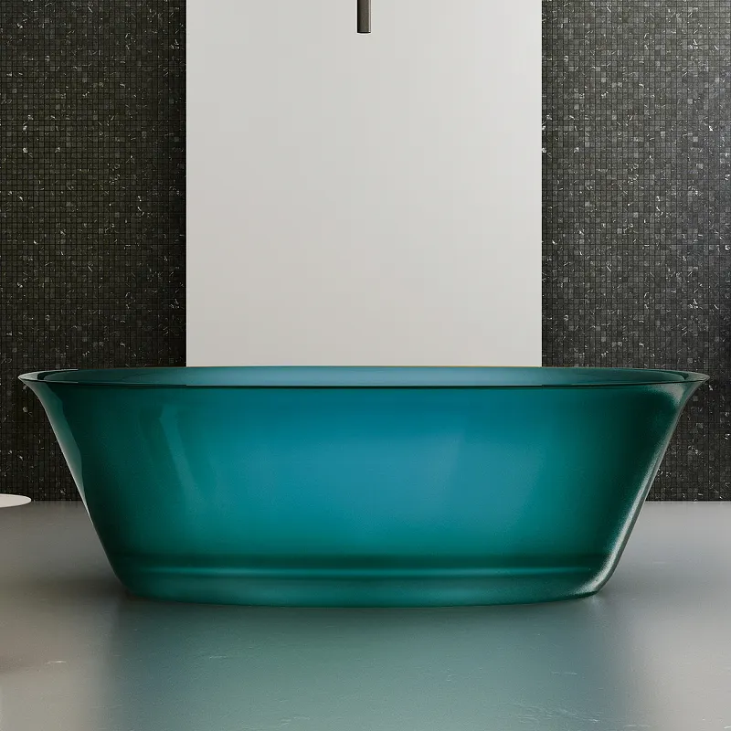 - Эстетическая привлекательность: бирюзовый цвет ванны из полиэфирной смолы делает её стильным акцентом в интерьере.
