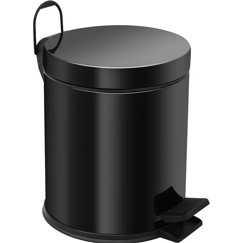 Ведро для мусора Berges Wasserhaus 123001.Характеристики: Цвет: черный. Материал: нержавеющая сталь, пластик. Покрытие: хромоникелевое. Объем: 5 л. Способ открытия бака: педаль. Монтаж: напольный. В комплекте поставки: Ведро для мусора.