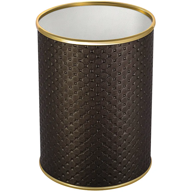 - Современный дизайн ведра для мусора — идеально вписывается в любой интерьер благодаря стильному сочетанию шоколадного цвета и золотого канта.