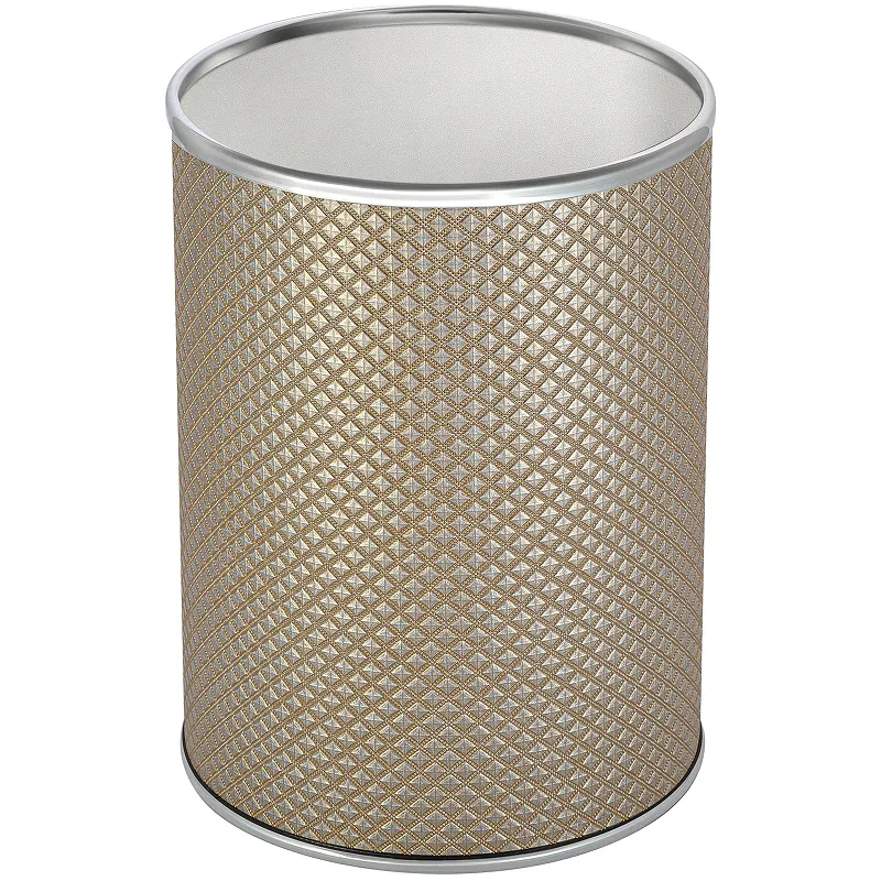 Ведро для мусора Geralis M-RBH-B Ромб открытое.Характеристики: Цвет: бежевый темный. Кант: хром. Материал: экокожа, ABS-пластик. Габариты (ШхВхД): 160х220х160 мм. Объем: 3 л. Монтаж: напольный.