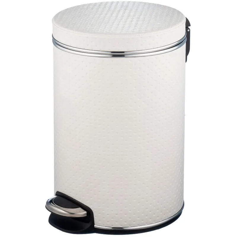 Ведро для мусора Geralis V-PWH-S Punto с педалью.Характеристики: Цвет: белый. Кант: хром. Материал: экокожа, ABS-пластик, металл. Габариты (ШхВхД): 230х360х260 мм. Объем: 8 л. Плавное закрывание крышки. Внутри мусорного ведра, съемное пластиковое ведро с ручкой. Надежный педальный механизм открытия крышки. Монтаж: напольный.