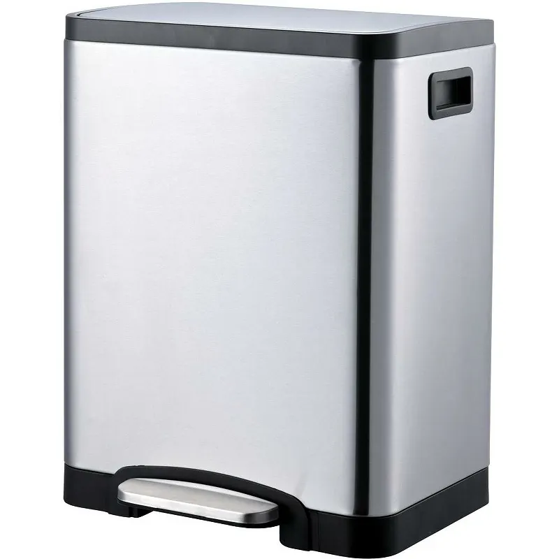 Ведро для мусора Nofer 09112.S.Крышка с амортизирующим доводчиком. С двумя пластиковыми разделительными контейнерами внутри. Специальная для разделения мусора. Корпус изготовлен из нержавеющей стали. Основание урны изготовлено из термопластичного материала. Ручки по бокам для удобства перемещения. Матовая отделка корпуса и глянцевая отделка крышки.Характеристики: Цвет: сатин. Материал: нержавеющая сталь AISI 304. Размеры (ШхВхД): 400х520х325 мм. Общая емкость: 30 литров (15л x2). Крышка управляется ножной педалью. Подходит для общественных мест. Монтаж: на пол. В комплекте поставки: Ведро для мусора.