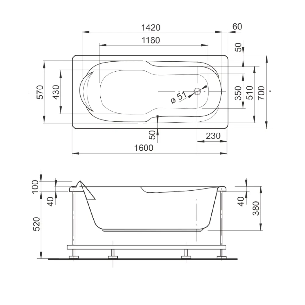 Ванна акриловая INA 160?70 – комфорт и долговечность Высокое качество и надежностьВанна INA 160?70 изготовлена из европейского акрилового листа толщиной 5 мм, который отлично сохраняет тепло и обладает гигиеничными свойствами. В зонах повышенной нагрузки установлены специальные закладные элементы, а снаружи корпус усилен армирующим слоем для дополнительной прочности. Преимущества:? Устойчивость к повреждениям – акрил не трескается и не тускнеет со временем.? Гладкая бесшовная поверхность – не впитывает загрязнения, легко чистится.? Комфортная глубина – удобный размер 150?70 см подойдет для комфортного купания.? Долговечность – прочная конструкция с усиленным корпусом. Комплектация и монтажВанна монтируется на металлический каркас (покрыт антикоррозийной порошковой краской, приобретается отдельно). Для полной комплектации потребуются: - Слив-перелив - Боковая и фронтальная панели Идеальный выбор для тех, кто ценит качество, удобство и простой уход!
