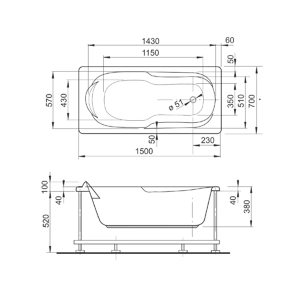 Ванна акриловая IVA 150?70 – комфорт и долговечность Высокое качество и надежностьВанна IVA 150?70 изготовлена из европейского акрилового листа толщиной 5 мм, который отлично сохраняет тепло и обладает гигиеничными свойствами. В зонах повышенной нагрузки установлены специальные закладные элементы, а снаружи корпус усилен армирующим слоем для дополнительной прочности. Преимущества:? Устойчивость к повреждениям – акрил не трескается и не тускнеет со временем.? Гладкая бесшовная поверхность – не впитывает загрязнения, легко чистится.? Комфортная глубина – удобный размер 150?70 см подойдет для комфортного купания.? Долговечность – прочная конструкция с усиленным корпусом. Комплектация и монтажВанна монтируется на металлический каркас (покрыт антикоррозийной порошковой краской, приобретается отдельно). Для полной комплектации потребуются: - Слив-перелив - Боковая и фронтальная панели Идеальный выбор для тех, кто ценит качество, удобство и простой уход!