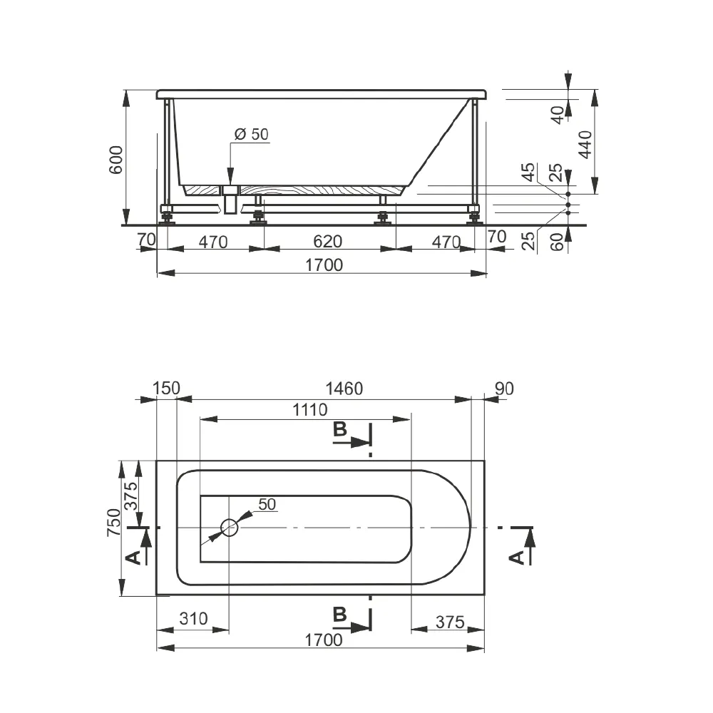 Акриловая ванна MIRA 170?75 – идеальное сочетание комфорта и качества Премиальный европейский акрилВанна MIRA 170?75 изготовлена из высококачественного акрилового листа толщиной 5 мм европейского производства. Материал отличается: - Отличной теплопроводностью – долго сохраняет тепло воды - Гигиеничностью – устойчив к образованию грибка и бактерий - Повышенной прочностью благодаря армирующему слою и закладным элементам в зонах нагрузки Преимущества модели:? Оптимальные габариты 170?75 см – удобная глубина и просторная чаша? Сверхгладкая поверхность – без пор, легко очищается от любых загрязнений? Устойчивость к повреждениям – не трескается, не теряет цвет со временем? Долговечность – усиленная конструкция выдерживает ежедневные нагрузки Комплектация и монтажДля установки потребуется: - Металлический каркас (с антикоррозийным порошковым покрытием) - Система слива-перелива - Декоративные панели (боковая и фронтальная) Примечание: каркас и дополнительные элементы приобретаются отдельно MIRA 170?75 – это эргономичная форма, современный дизайн и проверенное качество для вашей ванной комнаты!