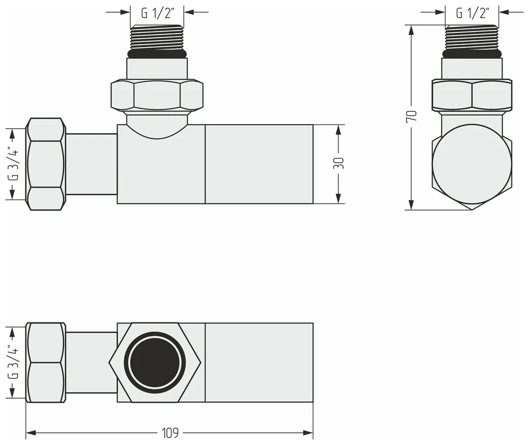 Вентиль Вентиль Сунержа угловой цилиндр (G 1/2" НР х G 3/4" НГ) RAL 9005 Глубокий черный арт-9005-1400-1234