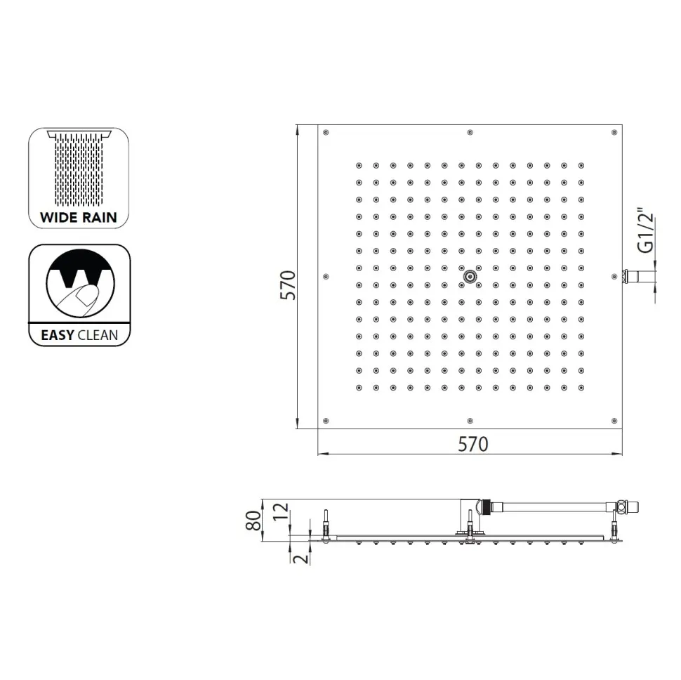 Верхний душ Bossini Dream H38862.030 570x570 мм потолочный Easy Clean цвет хром