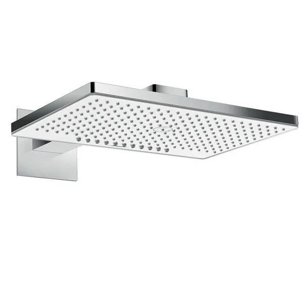 Верхний душ, Hansgrohe, Rainmaker Select, тип установки-настенный, размер душевого диска, мм-466*300, форма-прямоугольная, количество режимов-2, тип струи-Rain, RainStream, держатель-есть, размер держателя-460, внутренняя часть-необходимо заказать, цвет-белый/хром, материал душевого диска: безопасное стекло арт-24005400