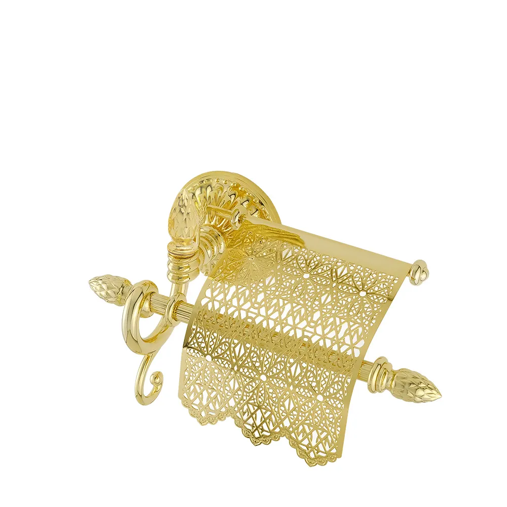 Бмагодержатель с крышкой коллекции VERSAILLES ренда MIGLIORE имеет очень красивую ажурную крышку, которая прикрывает сверху рулон туалетной бумаги, защищая его от пыли и брызг и придавая эстетичный вид. Изделие выполнено из высококачественной латуни и имеет гальваническое покрытие золотом 24 карата.
