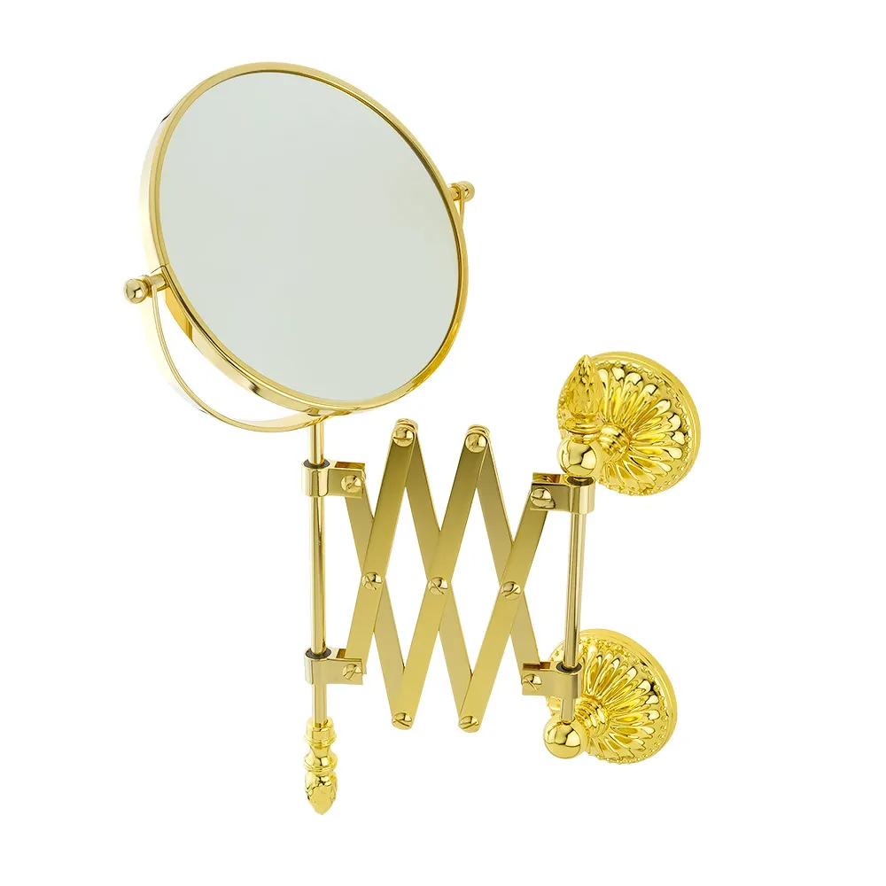 Настенное оптическое зеркало-пантограф коллекции VERSAILLES бренда MIGLIORE с двумя зеркальными полотнами, одно из которых имеет трехкратное увеличение для удобства нанесения макияжа или проведения уходовых процедур. Данное зеркало станет достойным украшением вашей ванной комнаты. Изделие выполнено из высококачественной латуни и имеет гальваническое покрытие золотом 24 карата.