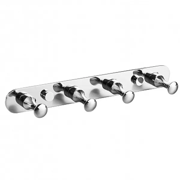 Вешалка для полотенец Milardo 002SM40M41 с четырьма крючками.Выполнена в лаконичном современном стиле. Станет изящным дополнением любой ванной комнаты за счет плавных линий и закругленных углов элементов конструкции.Держатель для полотенец изготовлен из прочного сплава металлов с никель-хромовым покрытием, которое придает изделиям высокую влаго- и износостойкость, что обеспечивает их долгий срок службы. Монтаж: скрытый заглушками - шурупами к стене или двери, не требует профессиональных навыков и знаний. Габариты (ШхВхГ): 23,5 х 3 х 4,5 см.В комплекте поставки: вешалка, крепеж.