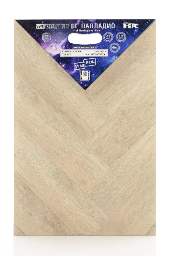 Технические характеристики Винилового ламината Vinilpol Herringbon 7 мм 9944 Паркет Палладио