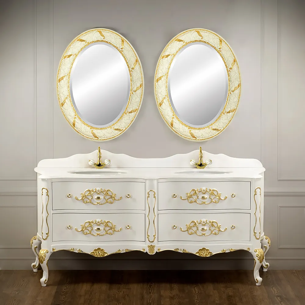 VIRGINIA База двойная L193xH82xP59 см. 4 ящика, цвет: LACATTO BIANCO/декор золото, ручки золото арт-30697