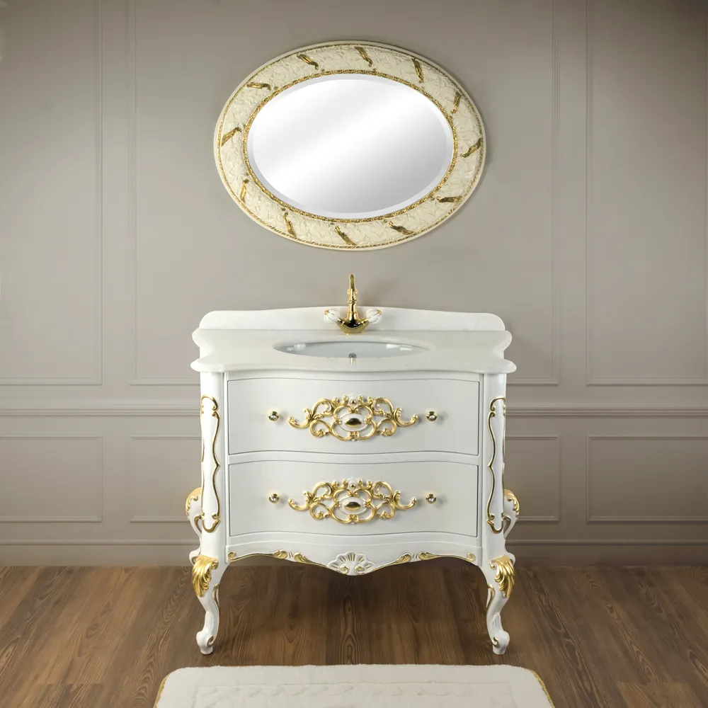 VIRGINIA База L110xH82xP59 см. 2 выдв.ящик, цвет: LACATTO BIANCO/декор золото, ручки золото арт-29974