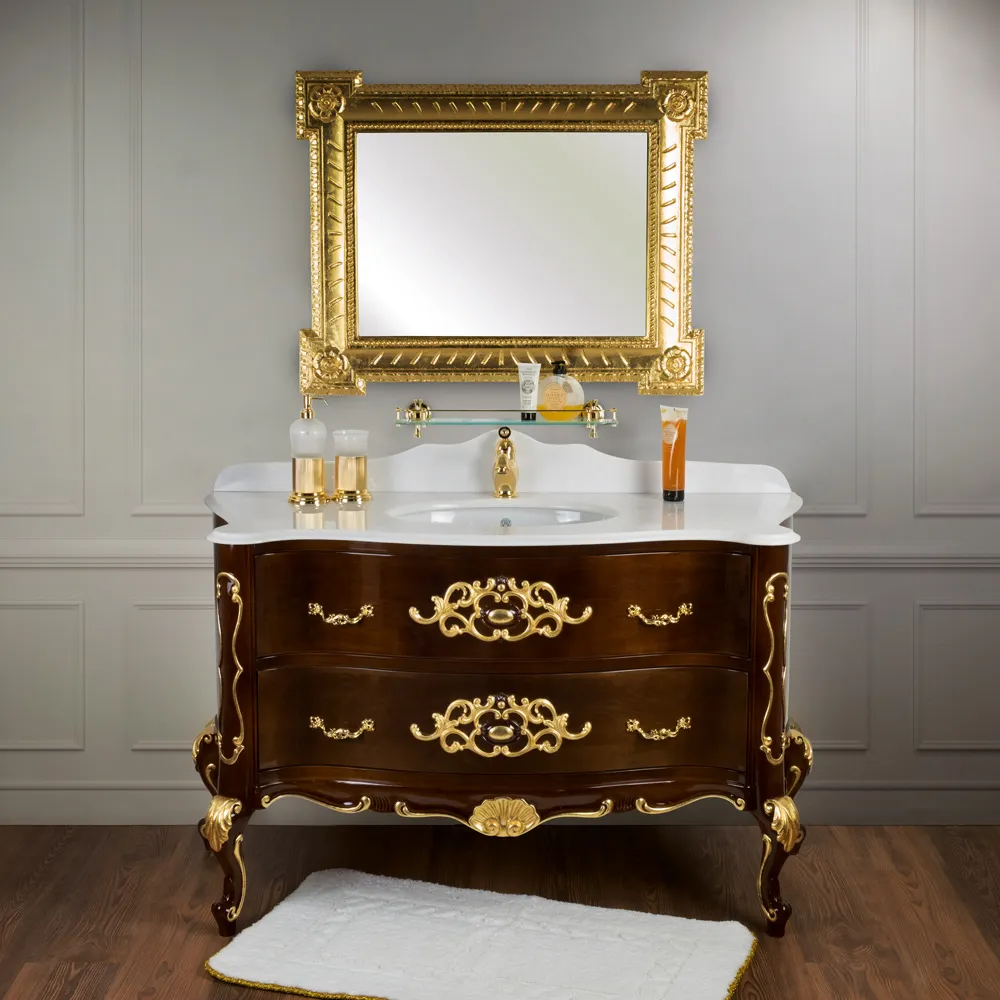 VIRGINIA База L139xH82xP59 см. 2 выдв.ящика, цвет: Орех темн. глянцевый/декор золото, ручки золото арт-29608