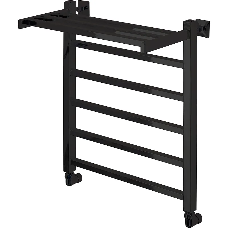 Водяной полотенцесушитель Comfysan Marte-K W-5 60x50 012540 с полкой — идеальное решение для обогрева и сушки полотенец в ванной комнате. Этот полотенцесушитель из нержавеющей стали обладает современным дизайном и оснащён 8 перекладинами, обеспечивая эффективное использование пространства. Его черное матовое покрытие станет стильным дополнением интерьера.