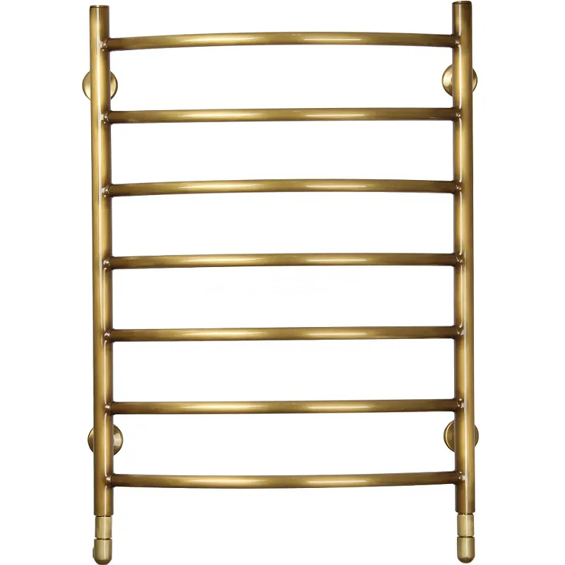 - Современный дизайн полотенцесушителя: Бронзовый цвет и форма лесенки впишутся в любой интерьер.