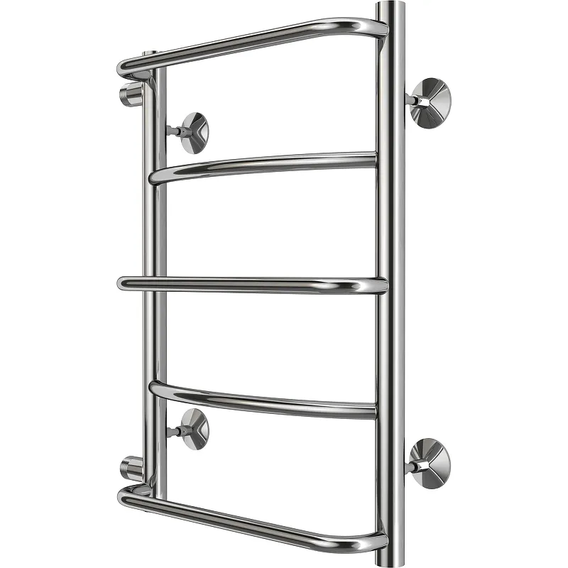 - Эстетичный дизайн: Хромированное покрытие и форма лесенки подчеркнут современный интерьер.