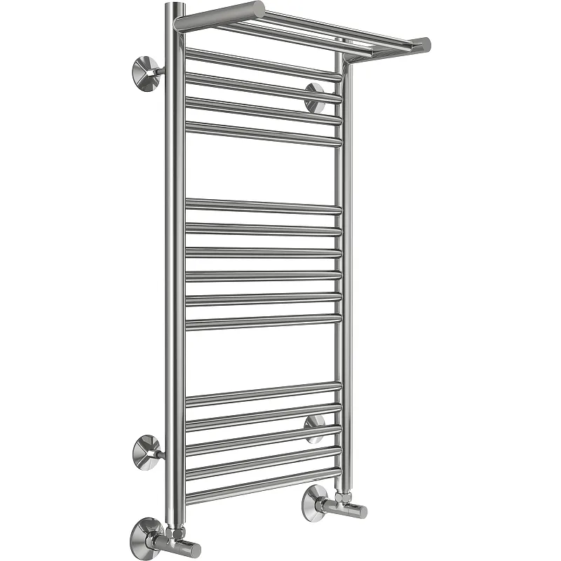 Водяной полотенцесушитель Terminus Аврора П16 400x800 4670078529411 с полкой Хром, нижнее подключение, G 1/2" ВР, с угловым соединением