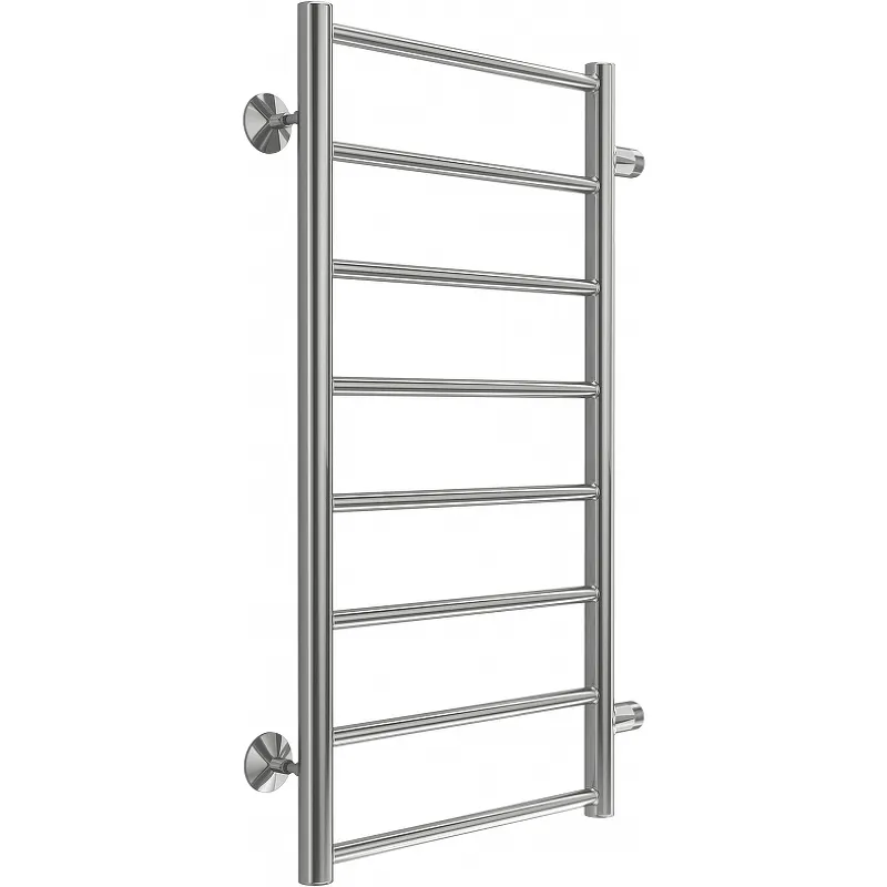 - Элегантный дизайн: Хромированная поверхность и форма лесенки создают стильный акцент в интерьере ванной комнаты.