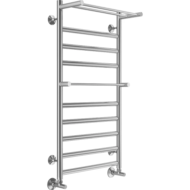Водяной полотенцесушитель Terminus Хендрикс П10 500х1000 4670078529824 с полкой Хром, нижнее подключение, G 1/2" ВР, с угловым соединением