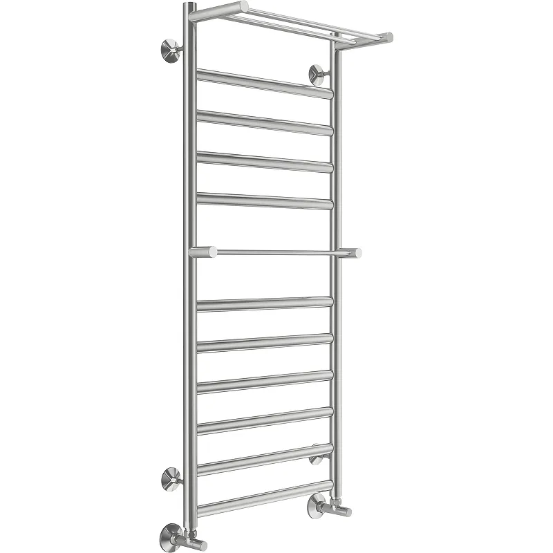 Водяной полотенцесушитель Terminus Хендрикс П12 500х1200 4670078529831 с полкой Хром, нижнее подключение, G 1/2" ВР, с угловым соединением