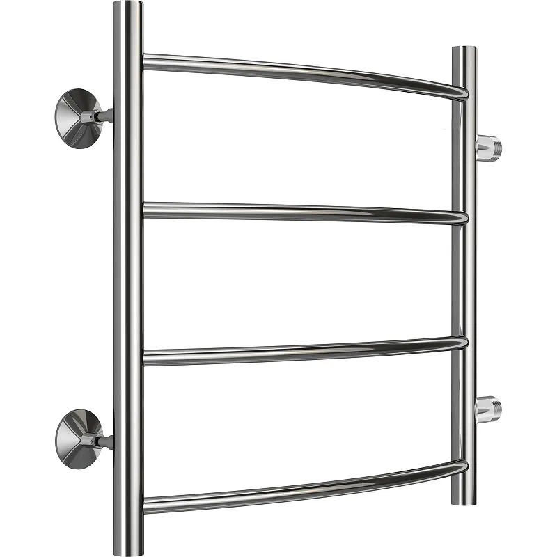 - Современный дизайн полотенцесушителя: Стильная хромированная поверхность и форма "лесенка" украсят любую ванную комнату.