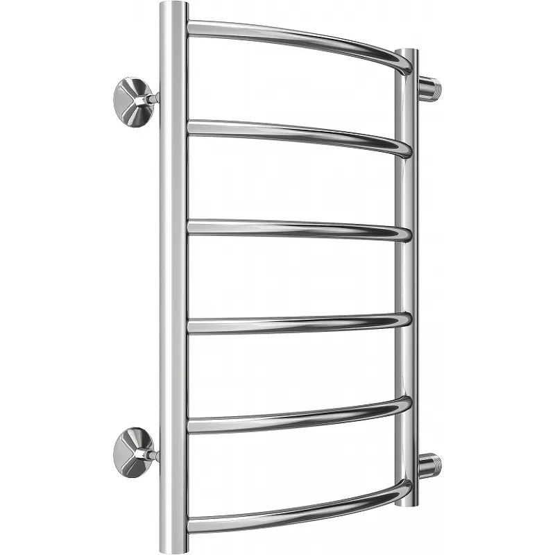 - Современный дизайн: Хромированное покрытие и форма лесенки делают его стильным дополнением любой ванной комнаты.