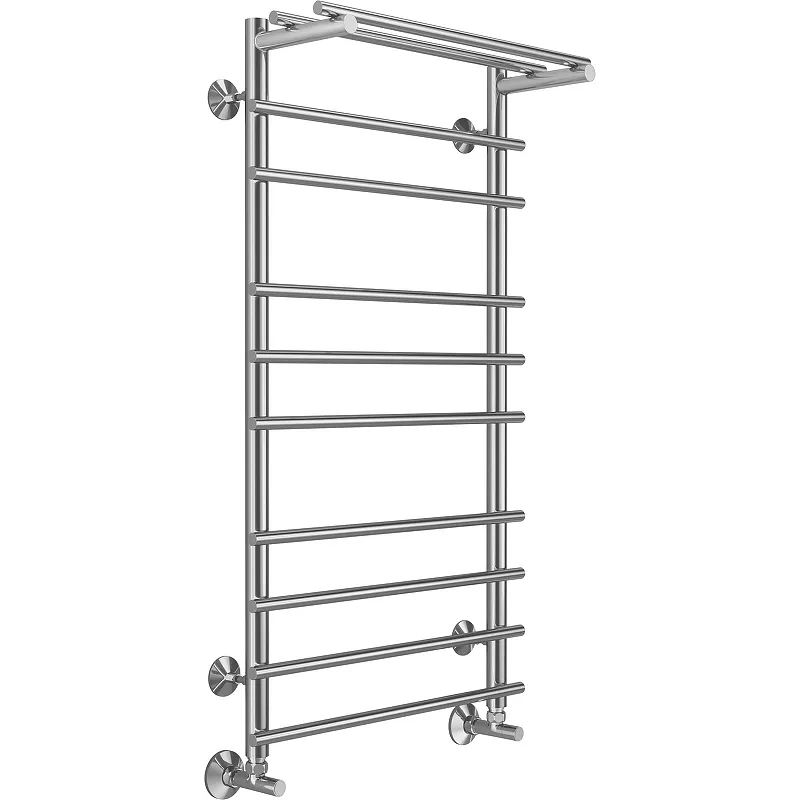 Водяной полотенцесушитель Terminus Ватра П10 500x1000 4670078529497 с полкой Хром, нижнее подключение, G 1/2" ВР, с угловым соединением