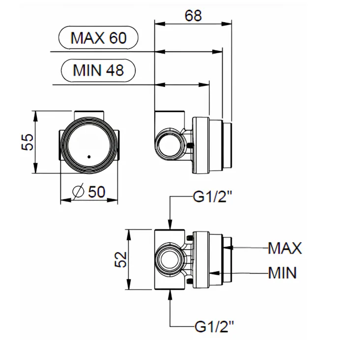Встраиваемая часть Bossini E370001.000 для гигиенического душа: E34, E37, E38