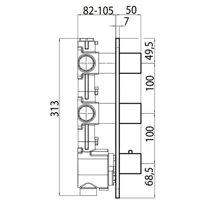 Встраиваемая часть Bossini для термостата для ванны и душа на 2 потребителя с 2 вентилями арт-Z030201000